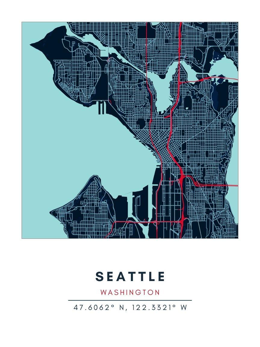 Seattle Map Wall Art Seattle City Map Art Prints High Quality Custom Made Art Point : If you’re keen on exploring the coffee culture and city life of Seattle, here are some notorious tourist traps you might want to avoid on your next trip. . Benaroya Hall and the Seattle Art Museum. Another popular tourist attraction just south of downtown is Pioneer Square, a historic district that was once the heart of the city. The buildings here .