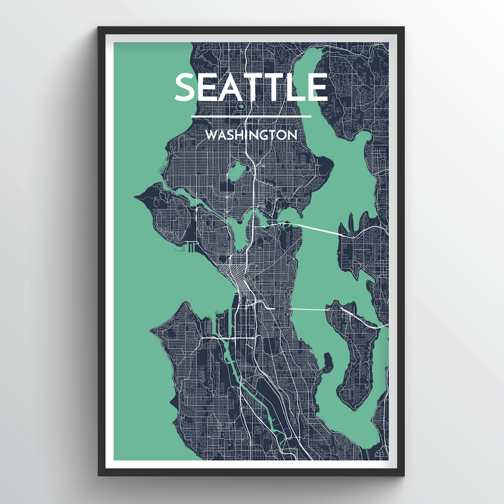 Seattle Map Wall Art Seattle Poster City Map Seattle Home Etsy