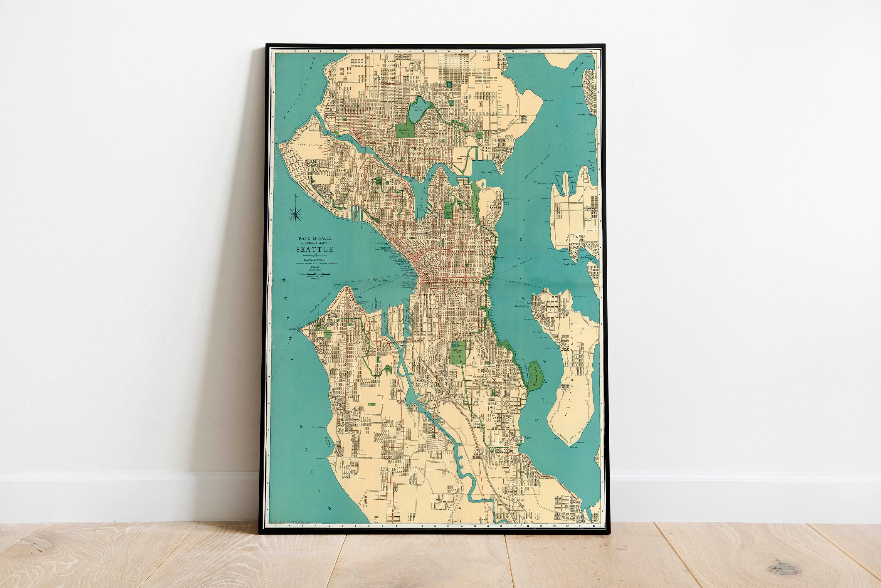 Seattle Map Wall Art Seattle Poster City Map Seattle Home Etsy
