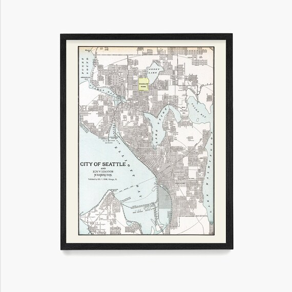 Old Seattle Map Seattle Street Map Old Maps Antique Seattle Etsy