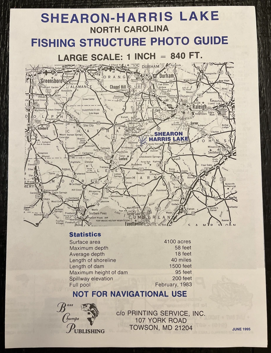 Large Fishing Structure Photo Guide Map SHEARON HARRIS LAKE North