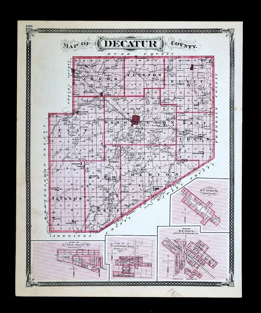 1876 Indiana Map Decatur County Greensboro St Paul Omer